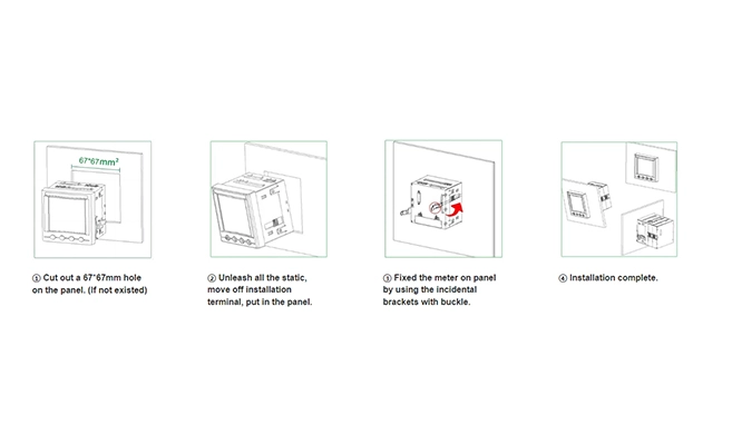 Instalação:Painel montado Frequência:Faixa: 45-65Hz Relé:3A/AC250V, 3A/DC30V Dimensão (L * W * H) Tamanho do painel (L × W): 75*75mm Tamanho do corte (L × W): 67*67mm Fonte de alimentação auxiliar AC/DC 85V ~ 265V ou AC/DC 115 ~ 415V |