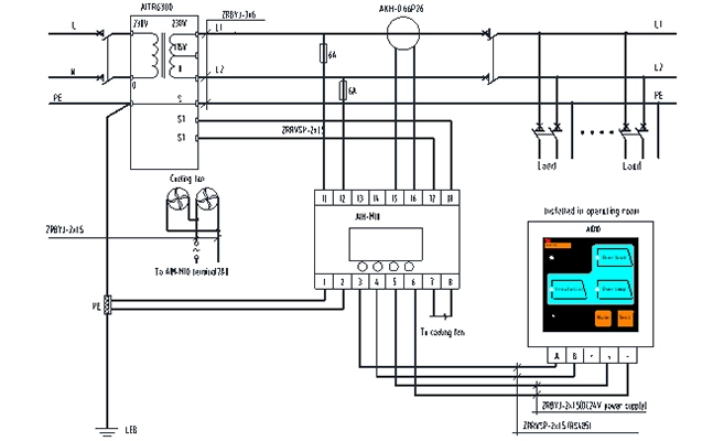 Monitoramento de carga e temperatura do transformador de isolamento