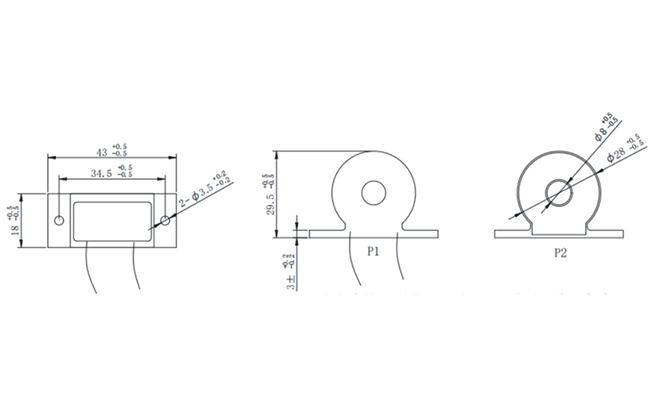 | Tipo | Relação (A) | Classe & fardo (VA/Ω) | Dia. (mm) | ||