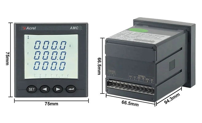 Corrente nominal: 3x5A AC ou 3x1A AC (via CTs)