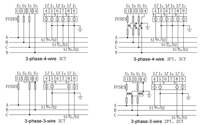 | Entrada | Conexão | Monofásico-2 fios, 3 fases-3 fios, 3 fases 4 fios |