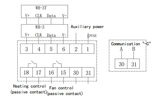 Precisão Temperatura ± 1 °C Umidade ± 5% RH Fonte de alimentação auxiliar AC 85-265V, DC 100-350V Consumo Fonte de alimentação auxiliar Consumo de energia básico (≤ 0,8 w) Consumo de energia do relé (cada canal≤ 0,7 w) | = |